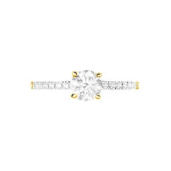 Demi Alliance Or Jaune 375/1000 Anneau Avec Pavage Simple Diamants 0.08cts