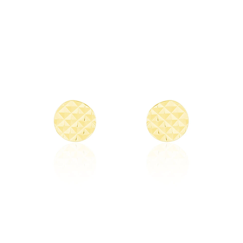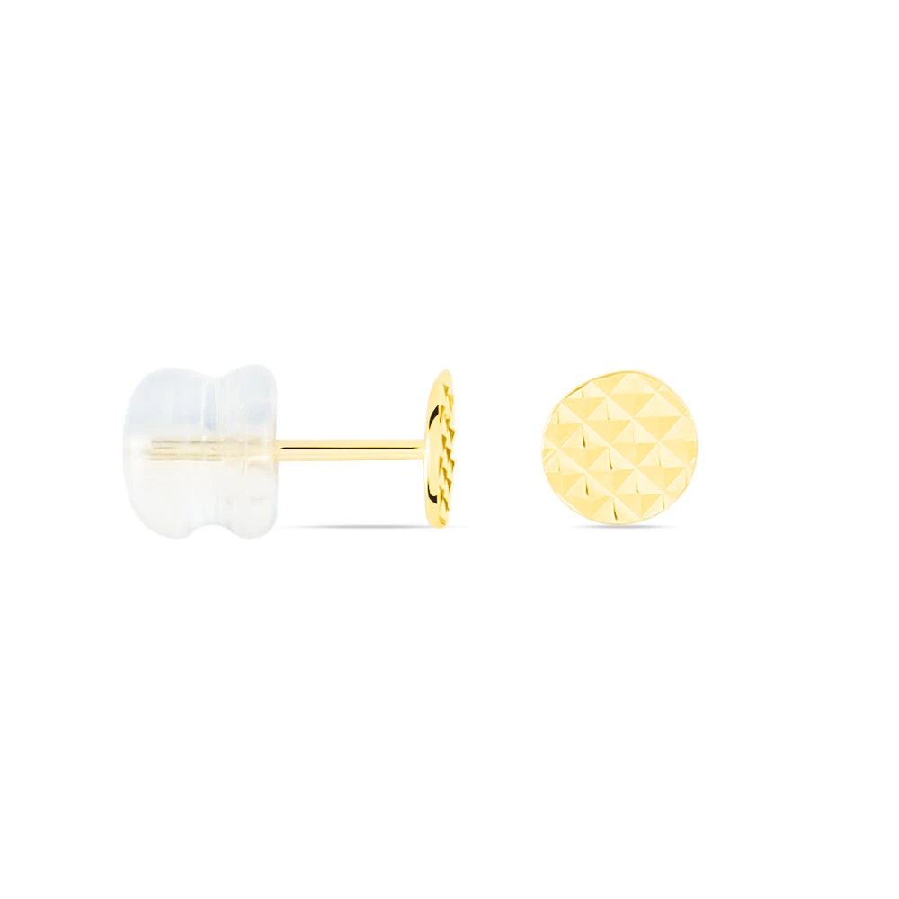 Boucles D’oreilles Or Jaune 375/1000 Puce Pastille Effet Diamante Diamètre 5mm