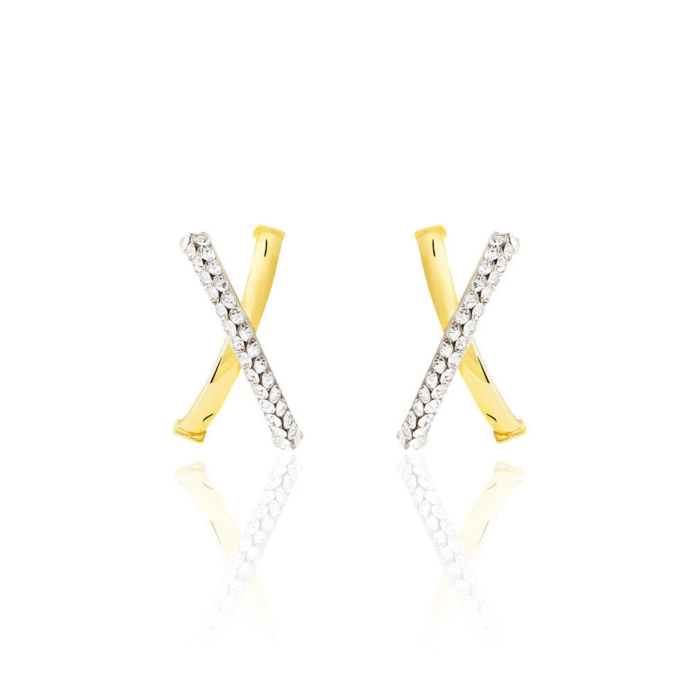 Créoles Or Jaune 375/1000 Demi Cercle Croisés Strass Diamètre 15mm