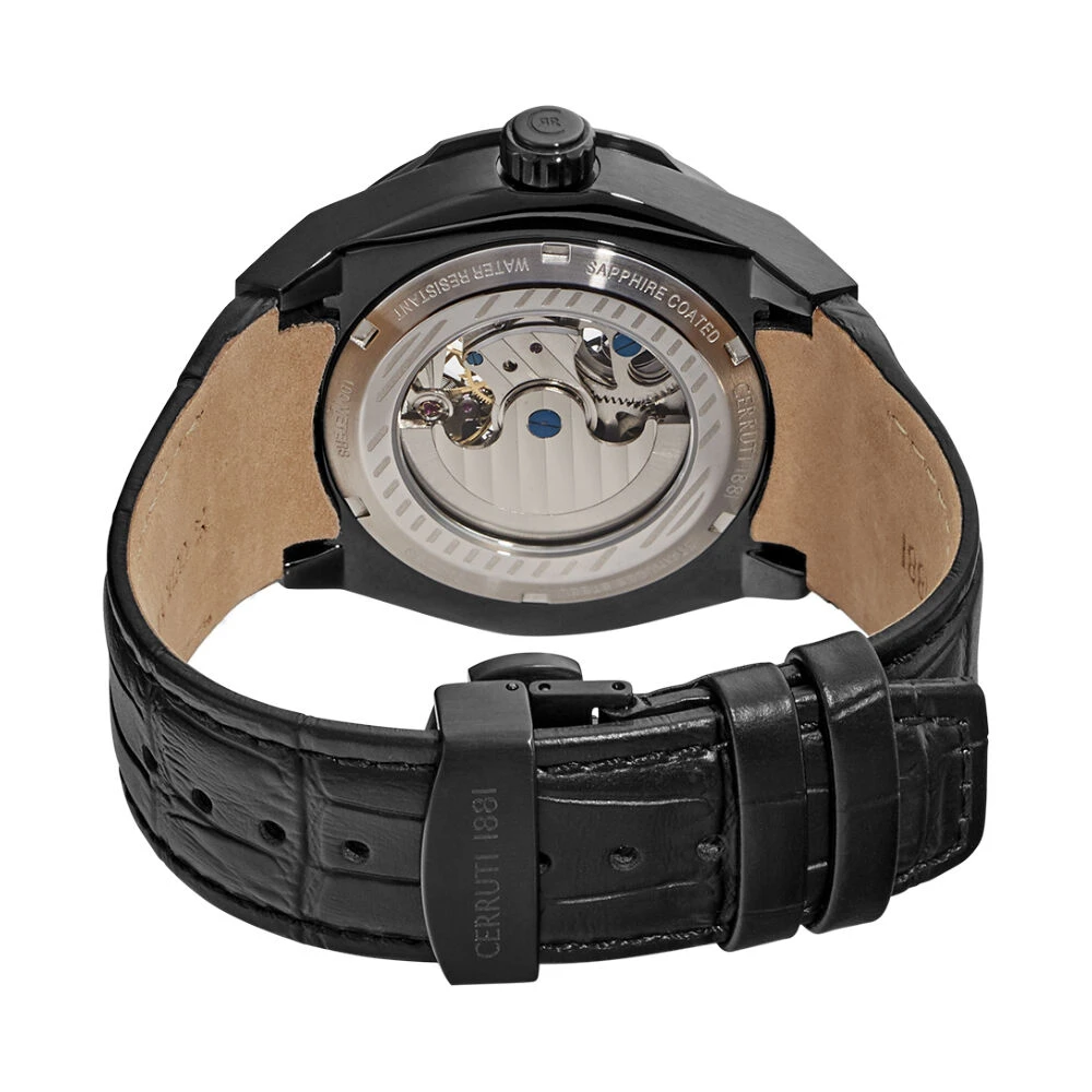 Montre Cerruti Cerruti Ruscello Automatic Acier Noir Ronde Automatique 44mm Fond Noir Lunette Noir Bracelet Cuir Noir Ciwge2207203