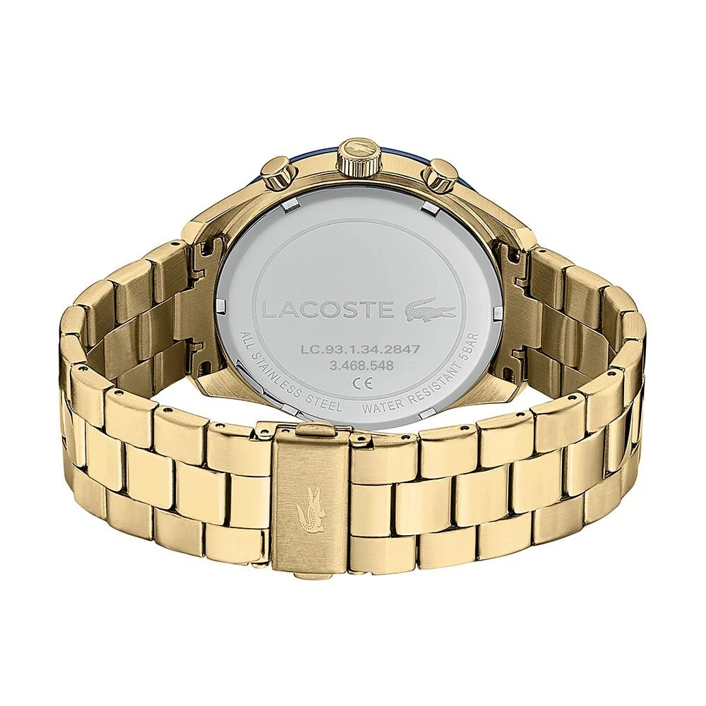 Montre Lacoste Boston Acier Dore Ronde Quartz Chronographe 42mm Fond Bleu Bracelet Acier Dore 2011096